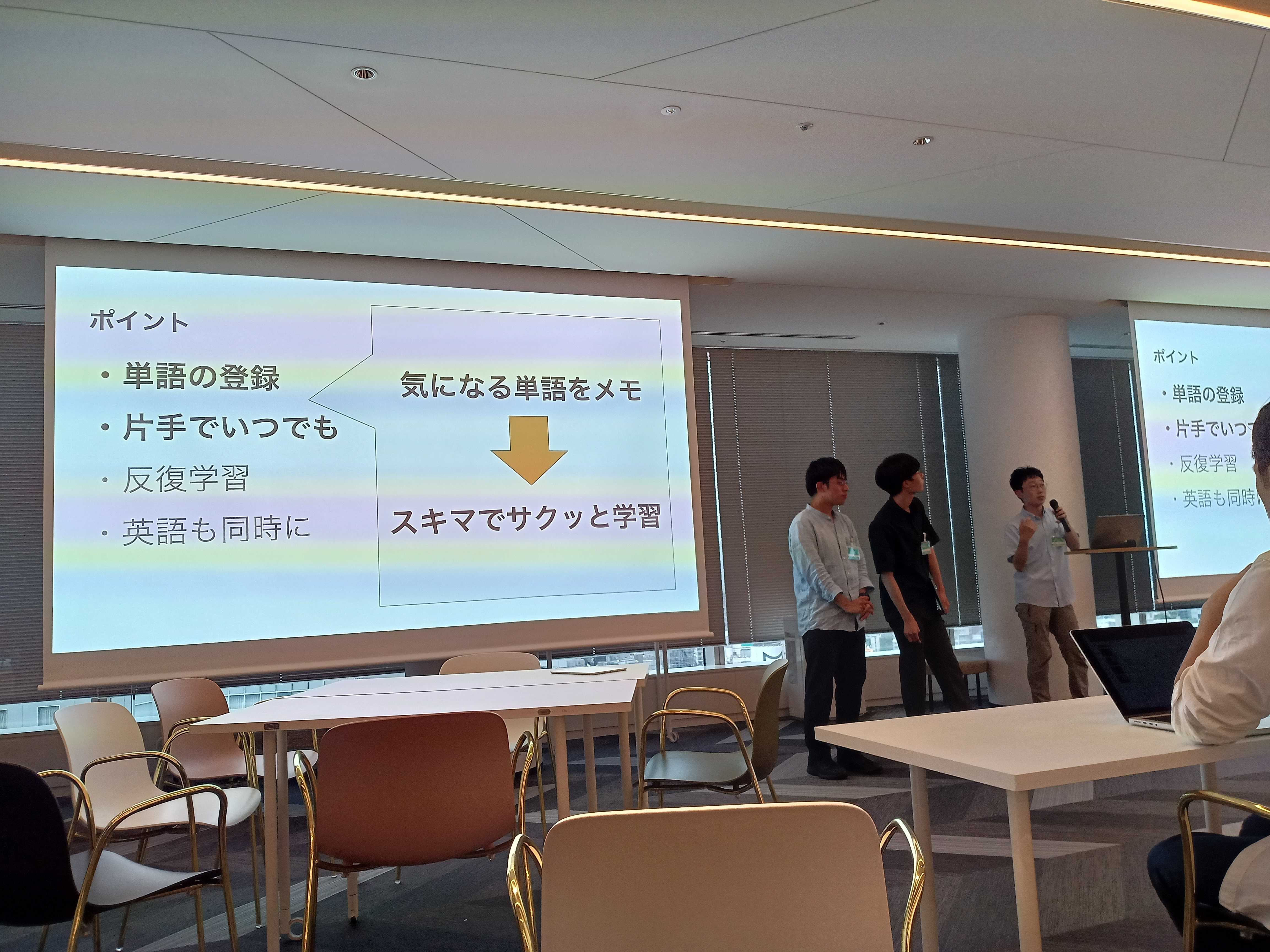 最終発表では、各チームが開発したプロダクトを発表しました。どのチームも素晴らしいプロダクトを開発していました。発表時に寸劇をすることで、実生活でどのように活用できるのかわかりやすく説明しているチームもありました。
